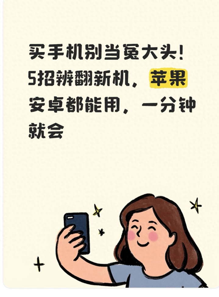 刚买的“新手机”用了没几天就卡顿、充电发烫,甚至突然黑屏——十有八九是踩了翻新机的坑!不管是线上二手平台,还是线下小店,翻新机的套路藏得越来越深,尤其是热门机型和千元机,骗子把旧零件换个新壳就敢卖新机价,不仅亏了钱,还可能因为电池老化、主板维修过埋下安全隐患。今天就用大白话教你5招,苹果安卓都适用,一分钟就能辨出真假新机。